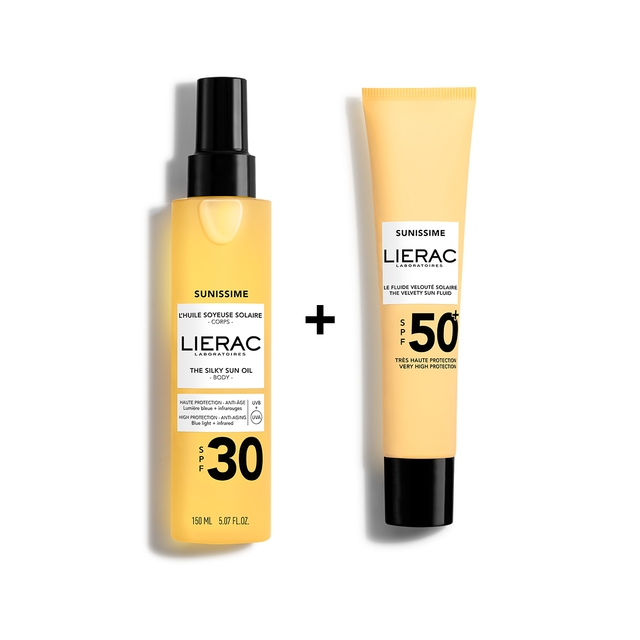 Le duo Huile Solaire et Fluide SPF50+ offre une haute protection large spectre visage et corps qui vous accompagnera tout l'été.