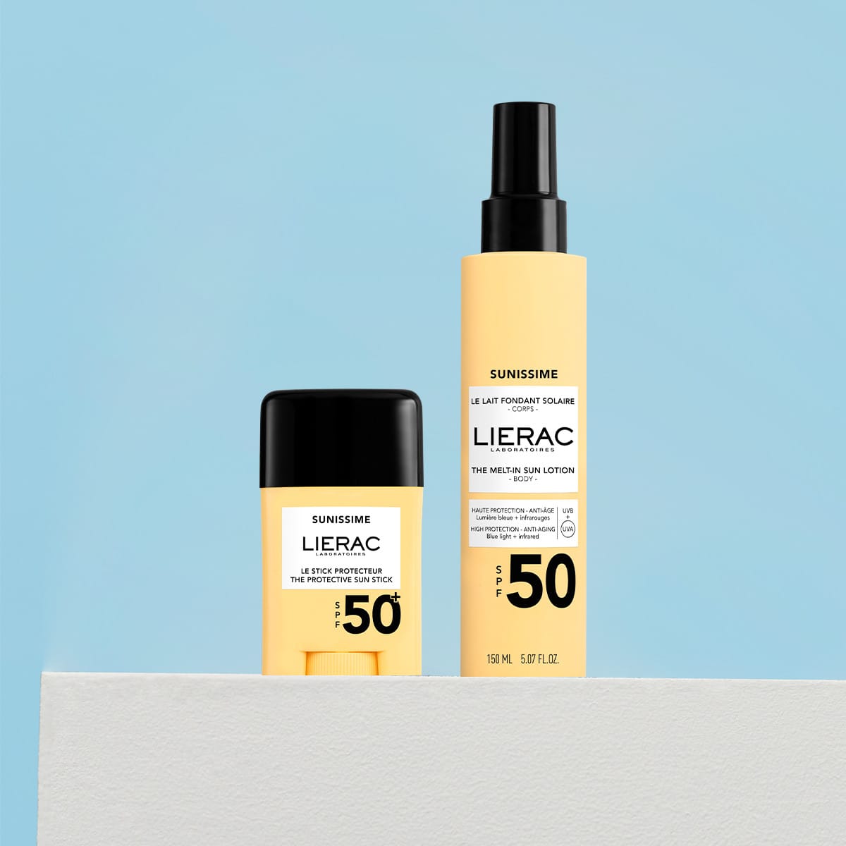 Le Duo Solaire Stick Protecteur et Fluide SPF50+ offre une très haute protection large spectre visage et corps qui vous accompagnera tout l'été.
